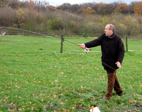 Endlich der Wurfwettbewerb! Wiederum Matthias, Marc und Kevin, als Elder Statesman Gebhard mit dabei, organisierten das Spektakel. Selten war eine Angelrute weniger benutzerfreudig, selten eine Fliege flugunfähiger. Allerdings war auch selten das Wetter so schlecht: Sturm, Kälte, Regen und Matsch ließen das Ganze zum Härtetest werden – dem entsprechend so einige von uns weicheiig und unter dem Vorschutz mehr oder minder gelungener Ausreden entzogen (der Verfasser dieser Zeilen zählte zu diesen Feiglingen – Wildlederschuhe …). Geleistet wurde Unglaubliches. |