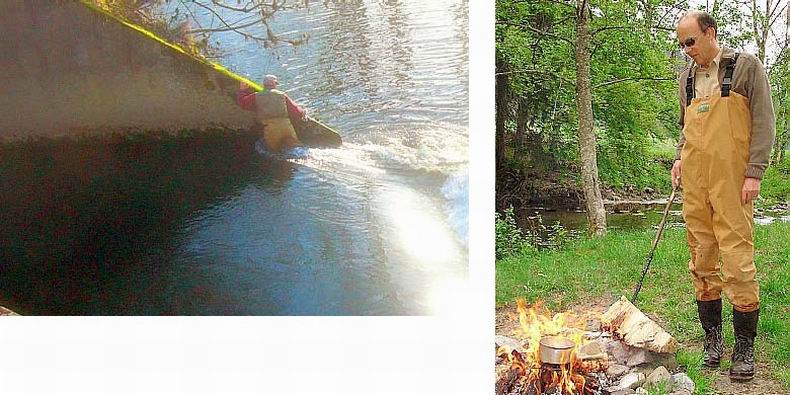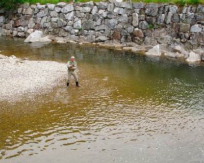| In der Strecke I scheinen mir vier, allenfalls sechs Fischer die angemessene Belastung zu sein. Je zwei/drei im oberen resp. unteren Abschnitt. Die grosszügigen Pools verweilen zum hartnäckigen Befischen. Sie sind ideal für die „Kiosktypen“ (Angler die weise warten, bis die Fische aktiv werden). Die vielen Läufe und Hinterwasser hingegen erquicken die „Walkman“ (Angler die unstetig den Fluss auf und ab stolpern). Ohnehin gilt die Regel, dass der Petrikamerad darauf achtet, dem Angler, der bereits am Wasser steht, den Vortritt zu lassen und sich genügend weit zu entfernen, um das Wasser – und übrigens auch den Kollegen - „nicht verrückt“ zu machen. | ![]() |