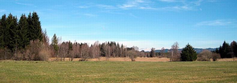 Im oberen Teil der Ach, bei der Sägerei „Boden“ durchläuft sie in weiten, geschwungenen Kurven das flache Moor, streckenweise durch unberührte Waldpartien. Die weite Ebene umrahmt von den sanften Höhenzügen des Allgäus ist einzigartig. Die Landschaft ist von atemberaubender Schönheit. Der Bach mit diesem quellsauberen Wasser, das den blauen Himmel spiegelt, die Ruhe und Einsamkeit erfüllen den Fischer mit einem Glücksgefühl. Man fragt sich „Wo bin ich – in der Hochebene von Peru?“ Auf jeden Fall ist man entrückt in eine andere Welt und dankbar, die Ach entdeckt zu haben. Im Sommer ist der Bach gesäumt vom Schilf. Die Schneelast im Winter drückt das Schilf zu einem federnden Teppich flach. Im Sommer haben die Schilfhalme das Terrain zurück erobert und die Ach hinter einem fast mannshohen dichten Gürtel versteckt. |