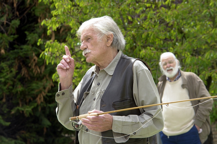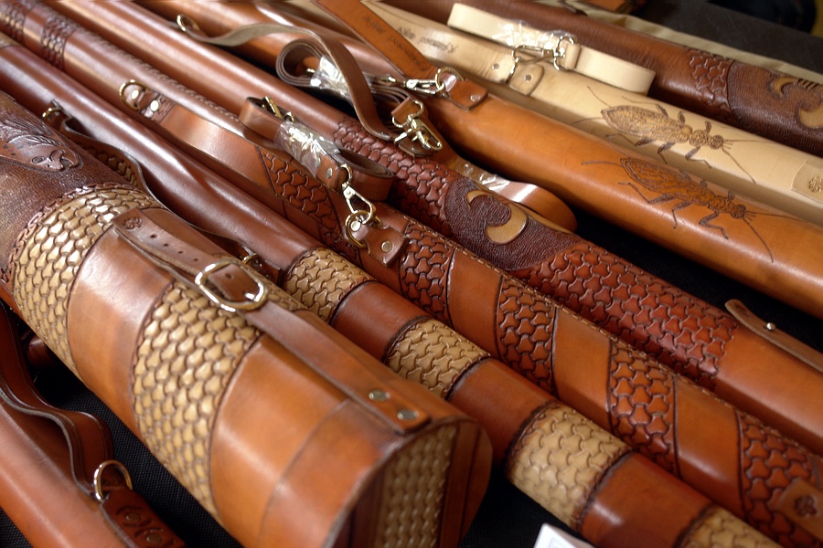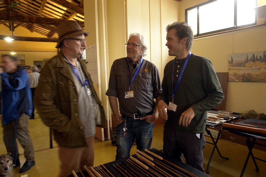 | Ständig kommt man ins Gespräch mit anderen Kollegen, bewundert den einen Rollenhalter oder den Zweihänder, am Nebentisch funkeln die Präziosen Achatringe von Luciano Oltolini, ein Anderer interessiert sich für eine spezielle Knotenpresse, unser finnischer Freund Tapani Salmi erklärt ununterbrochen seine 3-eckigen Ruten, im Hinterraum bringt Peer Doering-Arjes seine Beobachtungen, Erfahrungen und Gedanken von seiner Bambus-Expedition an den Mann, vor der Halle wird heftig geschlotet und einige Unentwegte werfen bei endlich etwas nachlassendem Regen auf der Wiese sogar die italienische Legende Roberto Pragliola lässt sich blicken und gibt in seiner unnachahmlichen Art eine Stunde Unterricht in der TLT-Technik es ist für jeden etwas da, sowohl für den Anfänger wie auch für den Fortgeschrittenen oder Profi. |