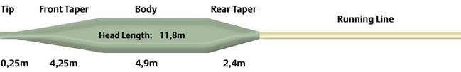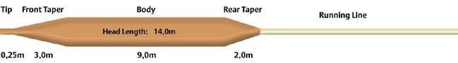 | Klassifizierung: | Die ersten 9,14 Schnurmeter wiegen 9 Gramm, das Gewicht liegt damit nach AFTMA-Tabelle vergleichsweise bei Schnurklasse #5. Das Gewicht der gesamten, 10,10 Meter langen Keule beträgt 10 Gramm. | Die ersten 9,14 Schnurmeter wiegen 9,9 Gramm, das Gewicht liegt damit nach AFTMA-Tabelle vergleichsweise zwischen Schnurklasse #5 und #6. Das Gewicht der gesamten, 14,80 Meter langen Keule beträgt 14,9 Gramm. |