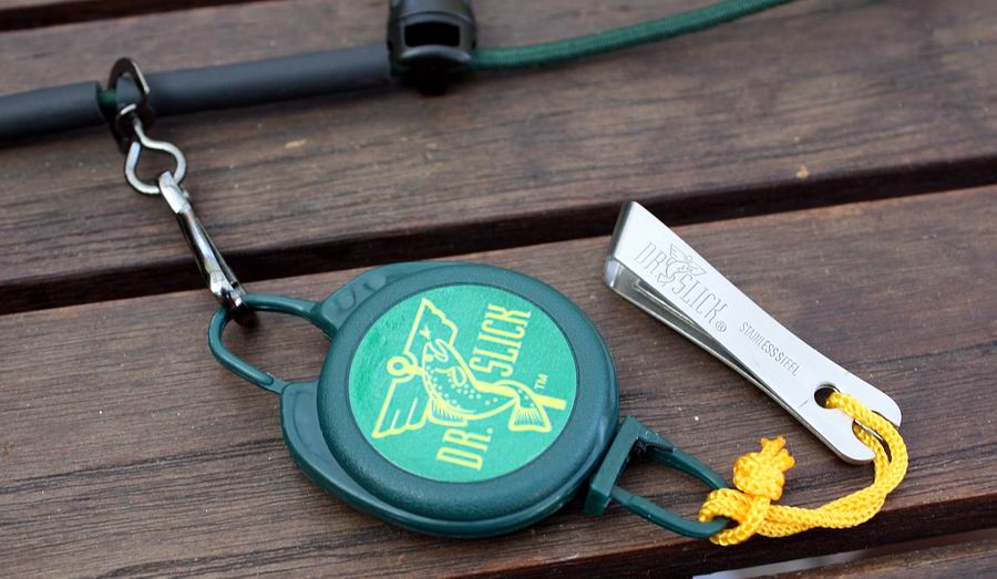 Karabiner und Ring. 75 cm Ausziehrolle mit Hakenlöser (Aterienklemme).