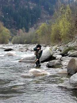 Ich tröstete meine Fischerfreunde. Wir hatten zwar schon die Karten für die Etsch gelöst, aber ich habe ja noch meine Alaskafreunde. Wir fuhren zur Etsch, um die Lage auszuloten. Ein Fischen war nicht möglich, denn das Wasser der Etsch war stark eingetrübt. Ich setzte mich mit meinem Alaskafreund Hubi Winkler in Verbindung. Und der sah in allem kein Problem. Die Karten wurden zurück erstattet und wir entschlossen uns, an die Passer zu fahren. Hubi setzte sich mit einem Fischzüchter in Sankt Martin in Verbindung und wir machten uns auf den Weg. |