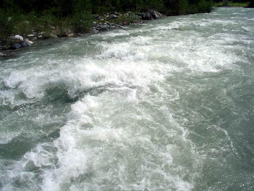 <= kein Riese, ca. 28 cm aber sehr agiler Fisch. Anschließend wieder Sendepause und nach einer Viertelstunde fuhr ich etwas flußaufwärts in Richtung Kötschach. Ich konnte mich noch erinnern, damals mit Karl dort gefischt zu haben. Es gibt einige große Wehre mit tiefen Tümpfen darunter, dort wollte ich es mit dem beschwerten Bugger versuchen. Allerding machten es die sehr starke Strömung und der hohe Wasserstand sehr gefährlich, an diese Stelle zu gelangen, aber ich konnt´s trotzdem nicht lassen.... |