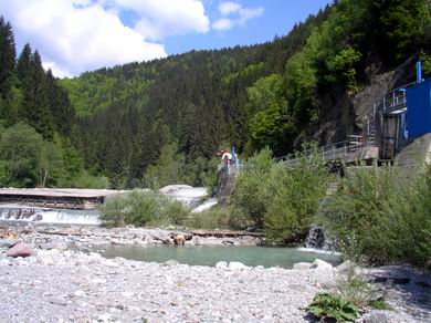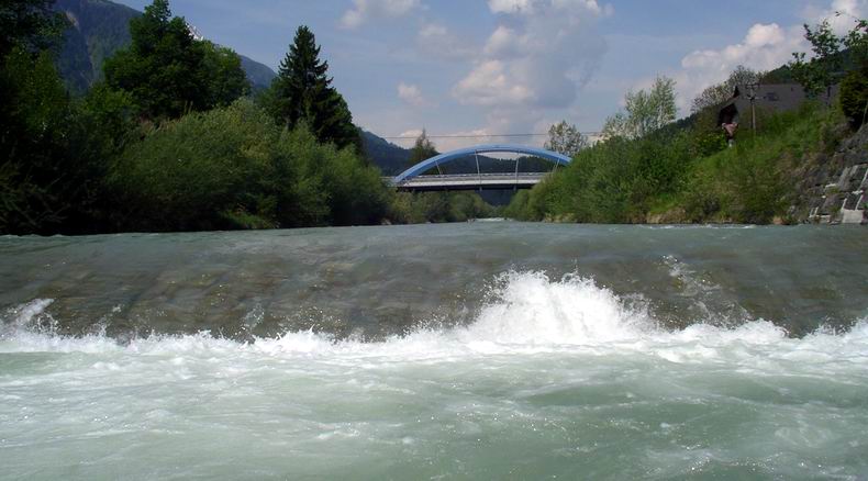 | Gegen 10:00 Uhr war ich endlich am Wasser. Ich entschloss mich, an der Gail oberhalb von Kötschach am großen Wehr des Sägewerks anzufangen. An diese Stelle konnte ich mich noch gut erinnern. Das Wasser war noch etwas mehr vom Schmelzwasser getrübt als am abend vorher, doch konnte ich schon einige Rainies beobachten. Langsam näherte ich mich dem ersten Pool unter einer Schleuse des Sägewerks... |