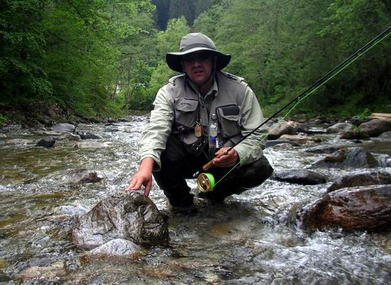 bemerkt man sofort, das Stefano ein echter Fliegenfischer ist, der sich