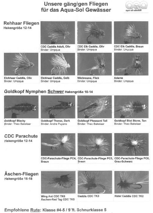 Um 9:00 Uhr traf dann Rainer's Lehrer ein...ein wirklich super netter Kerl namens Sepp. Rainer wurde fortan unter seine Fittiche genommen und wir verabredeten uns wieder gegen 13:00 Uhr, nicht ohne noch kurz den Tipp von Sepp zu bekommen, es am vormittag eher an der Gail selbst zu versuchen und am nachmittag lieber am Grünsee oder den diversen Zuflüssen der Gail. Dies sollte ich jedoch selbst noch feststellen... Mit Stefano ging ich noch kurz die momentan fängigsten Fliegen durch, er hat dort einen Fischerplan vorbereitet - mit der Abbildung der fängigsten Fliegen auf der Rückseite. Zu den momentan Angesagten zählten die Wooly Bugger in braun + schwarz und stark beschwert sowie als Trockenfliegen die Adams und auch die Pheasant Tail (eher für die Zuflüsse). Hier ist der Gewässerplan und die empfohlenen Fliegenmuster, leider habe ich keine bessere Aufnahme dieser beiden Dokumente. Es gibt sie aber unter der neuen Homepage des Hotel Post (siehe ganz unten). |