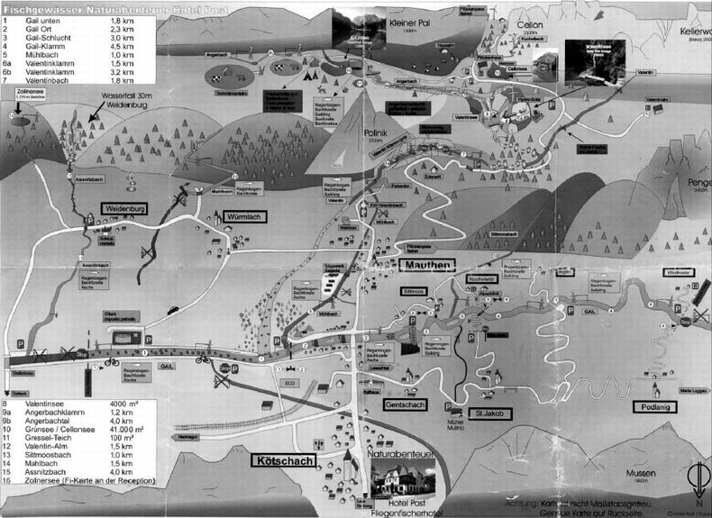 Update Sommer 2009: Das Hotel Post hat seit Frühjahr 2009 leider geschlossen. Die Fischerei ist aber im selben Umfang weiterhin möglich. Die neuen Kontaktdaten betr. der Fischerei in Kötschach - Mauthen: Aqua-Sol-Abenteuer AAE Wasserkraft GmbH Familie Klauss-Lanzer A-9640 Kötschach-Mauthen 66 Tel: 0043 4715-222-0 ab 17 Uhr Durchwahl 51 oder 43 Fax: 0043 4715-222-53 E-Mail: office@flyfish.at Homepage: www.flyfish.at |