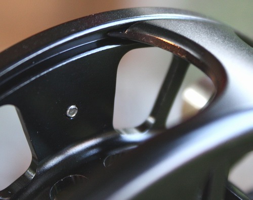 Ein ungewolltes Durchrutschen von Schnur, Vorfach oder Backing ist aufgrund der Rollenbauart mit nur minimalsten Toleranzen weitgehend ausgeschlossen. Die Rolle ist, am Rollenfuß gehalten, perfekt und neigungsfrei ausbalanciert. Die Spoke S-6 kann für Links- und Rechtshandbetrieb benutzt werden. Zum Umstellen wird lediglich der Mitnehmer um 180 Grad geschwenkt (siehe Foto unten), einfacher geht's nicht. Die Spule besitzt einen frei laufenden Rand, um bei Bedarf auch eine zusätzliche Handbremskontrolle zu ermöglichen. Die Kurbel aus Kunststoff ist leichtgängig, griffig und spielfrei, mit einer "Rinne", die einem Abrutschen der Finger entgegenwirkt. Ihr gegenüber sitzt ein Kontergewicht als Unterstützung für einen ruhigen, schlagfreien Spulenlauf. Die Spule läuft sauber, rund und auch bei hohen Abzugsdrehzahlen 100% schlagfrei. Jegliches Spulen-Spiel, Kippeln etc. ist nicht vorhanden, alle Ecken und Kanten von Rolle und Spule wurden sorgfältig abgerundet. |