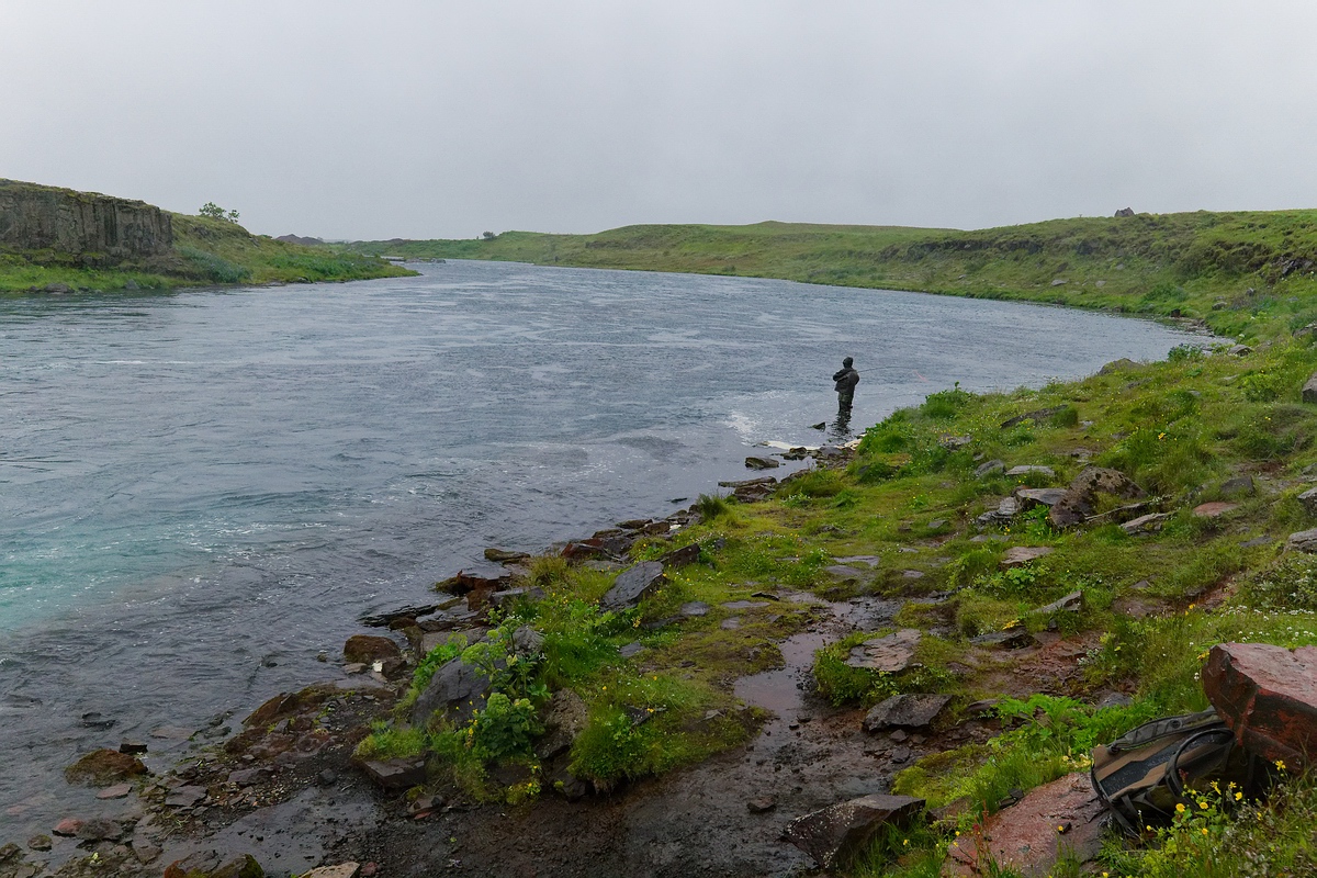 Unser Favorit nach der EWF war eigentlich die Jökla im Nordosten von Island, die von Throstur Ellidason bewirtschaftet wird. Dieser Plan kam dann erstmals ins Wanken, als die Fischerei an der Jökla im Jahr 2023 bereits Anfang August abgebrochen werden musste, da das Reservoir, das das Gletscherwasser über den Sommer zurückhält, bereits zu dieser frühen Zeit übergelaufen ist. Dazu kam noch, dass die Preise für 2024 trotzdem relativ massiv erhöht wurden, sodass wir uns anderweitig umsahen. Ich nahm dann nach meinem Sommerurlaub mit der Familie Kontakt mit Carsten Dogs von pukka destinations auf, über den wir auch schon unsere vergangenen drei Angelreisen gebucht hatten. Nachdem wir uns auch einige andere Lachsflüsse angesehen hatten, entschieden wir uns schließlich für zwei Tage an der West Rangá. Die West Rangá ist seit gut 20 Jahren einer der produktivsten Lachsflüsse in Island, obwohl die Lachse dort nur in geringem Maße natürlich aufwachsen. Das liegt am feinen Lavasand des Flusses, der die Lachseier nur selten zur Reife kommen lässt. Man greift dem Lachsbestand deshalb künstlich unter die Arme, in dem man die größeren weiblichen Lachse abstreift, künstlich befruchtet und in einer Fischzucht ausbrütet, bis man die kleinen Lachse in Teiche am Ufer der Rangá aussetzt und diese bei Hochwasser in den Fluss entlässt. Danach entwickeln sich die kleinen Lachse, wie wenn sie natürlich aufgewachsen wären und kommen nach einem oder mehreren Jahren im Atlantik wieder in die West Rangá zurück. Wir haben letztendlich eine