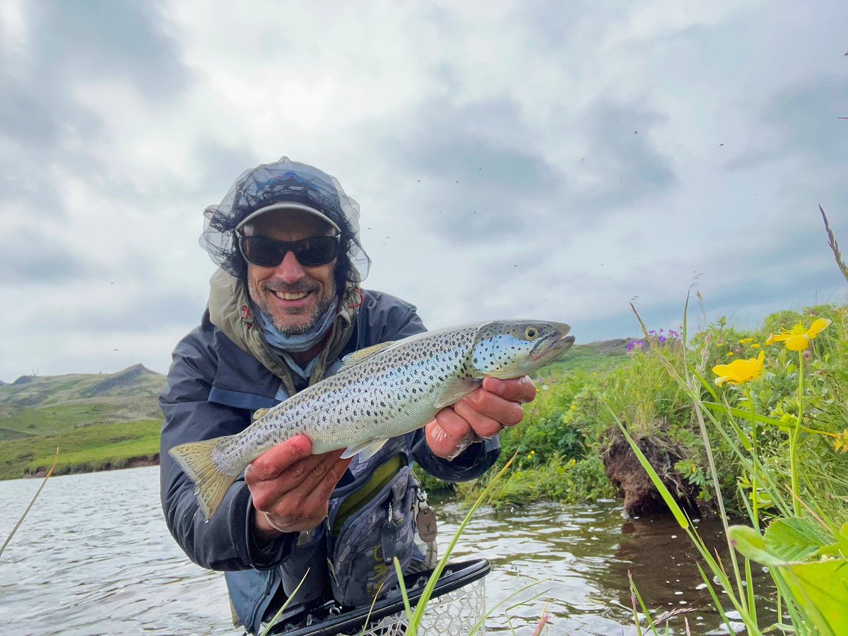 Die West Rangá ist ein sehr schöner, abwechslungsreicher Fluss mit einem sehr guten Lachsaufstieg, den man in zwei vollen Angeltagen nur bruchstückhaft kennenlernen kann. Mit unseren fünf gefangenen Lachsen lagen wir am oberen Ende der realistischen Erwartungen zu dieser Zeit und waren damit ziemlich zufrieden. Unser Guide Sverrir war sehr erfahren und immer bemüht, uns an den Fisch zu bringen. Die ganze Fischerei und auch die Lodge sind hochprofessionell organisiert. Einziger Wermutstropfen ist hier wirklich der exorbitante Preis, selbst für eine geteilte Rute… Die beiden Tage am Villingavatn waren wie erwartet herausfordernd, wobei zumindest ich mit meinen beiden größeren Brown Trout zufrieden war. Die Tage am Úlfljótsvatn und die knapp drei Stunden am Thingvallavatn waren eher schwierig und bis auf 20 Minuten bei Tobi nicht wirklich erfolgreich. An den großen Seen kommt es einfach darauf an, zur richtigen Zeit am richtigen Ort zu sein, was entweder mit Ortskenntnis, viel Ausdauer oder mit Glück zu tun hat. Ob wir es beim nächsten Besuch in dieser Ecke Islands wieder mit der Veidikortid versuchen oder etwas Anderes machen, werden wir dann sehen. Wobei man bei der Veidikortid wohl eher etwas mehr Zeit als zweieinhalb Tage mitbringen sollte. Während unserer drei Tage an der Midfjardará haben Manfred und ich mit der Konzentration auf die Lachsfischerei einfach auf das falsche Pferd gesetzt. Ich hätte eigentlich schon gedacht, dass man dort den ein oder anderen Lachs fangen kann, vor allem, da während unseres Aufenthalts in der Lachsstrecke direkt oberhalb sehr gut gefangen wurde. Aber vermutlich muss man auch hier genau zur richtigen Zeit am Wasser sein, da die Lachse scheinbar eher schnell durch den Trout/Char-Beat nach oben ziehen. Zumindest haben wir außer am ersten Abend im Pool unter der Brücke keine weiteren Lachse springen sehen. Zum Schluss nochmal ein herzlicher