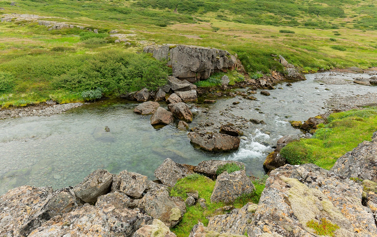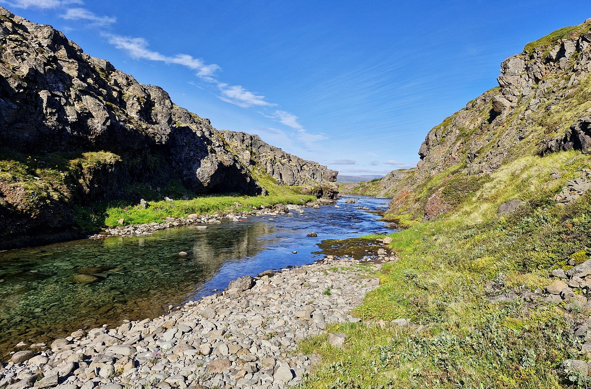 Islands, dessen lachsführende Strecke etwa sieben Kilometer beträgt.