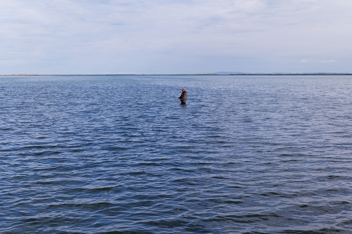 direkt neben einem anderen Fliegenfischer, wodurch die dreieinhalb Stunden