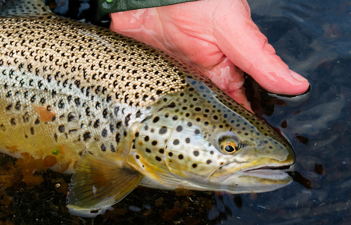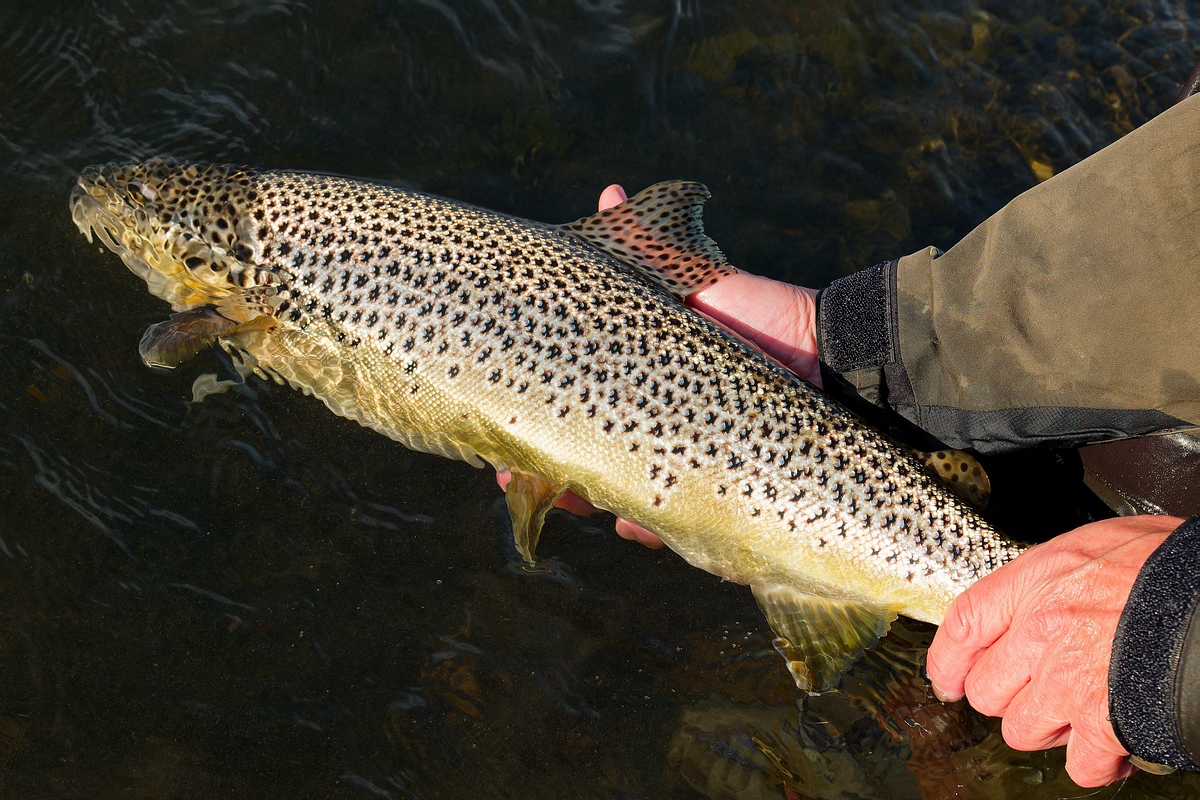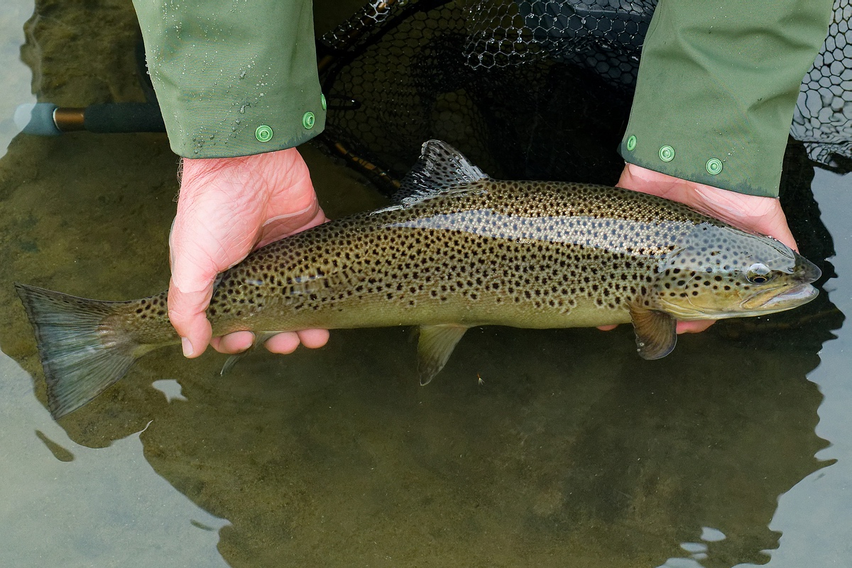 Brown Trout nach einigen Minuten problemlos selbst keschern. Der Fisch
