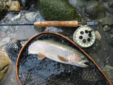 und nach kurzer Zeit ist die wunderbare gute 30 cm lange Regenbogenforelle