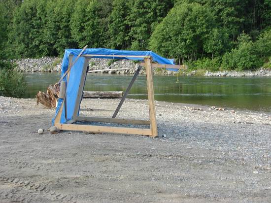 Wie jedes Jahr hatte sich der Flusslauf wieder neu gestaltet. Hauptströmungen und Pools (Running- und Standpools) musste ich neu erkunden. Die Natur ist nicht vorhersehbar. Neben einem besonders großen Pool fanden wir einen kleinen Unterstand, der uns noch gute Dienste erwies. |