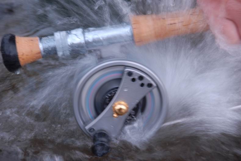 die Rolle begann ihr Lied zu singen. Ein Königslachs zog die Leine