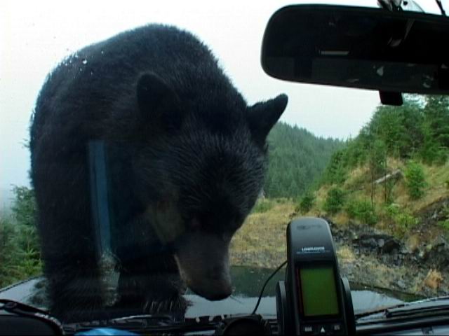 Schaut euch mal das Bild genau an. Es ist nur die Windschutzscheibe zwischen dem Fotograf und dem Bären. Willy ist der Fotograf. |