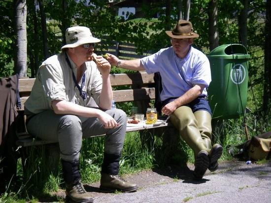 Links & unten: Auch Fischen macht hungrig und müde! |