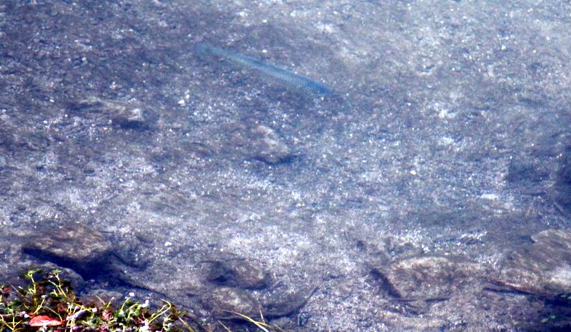 Diese hervorragende Wasserqualität ist meiner Meinung nach auch der Schlüssel zu dem gewaltigen Fischbestand der Krušnica. Überall sieht man kleine Forellen und Äschen und unter zwei von drei Steinen lebt eine Mühlkoppe. <= Eine der zahlreich vorkommenden Mühlkoppen der Krušnica |