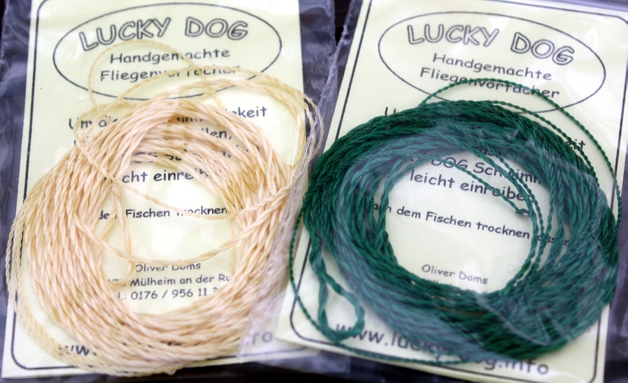 | Wir haben seit anderhalb Jahren eine Auswahl der LUCKY DOG Fliegenvorfächer im Dauertest, inklusive der beiden angebotenen Schwimm- und Sink-Präparate. Und nun natürlich auch die Neuen für Meerforellen. Gegenüber Vorfächern aus Nylon, ob nun gezogen, geknotet oder verzwirnt, bieten die LUCKY DOG Vorfächer eine ganze Reihe von Vorteilen, die in der Praxis sehr relevant, ja geradezu verblüffend sind (besonders wenn man bisher nur Nylonvorfächer kannte...). LUCKY DOG Vorfächer werden in Deutschland aus Garn hergestellt, sind höchst geschmeidig und haben keinen Memory-Effekt. Die Gefahr des Werfens von Windknoten entfällt ebenfalls weitgehend. Die verjüngt hergestellten Vorfächer halten die ganze Saison oder länger (eigentlich unterliegen sie keiner Abnutzung!). Die Vorfächer rollen harmonisch ab, die Fliege kann sauber und unauffällig präsentiert und abgelegt werden. | ![]() |
