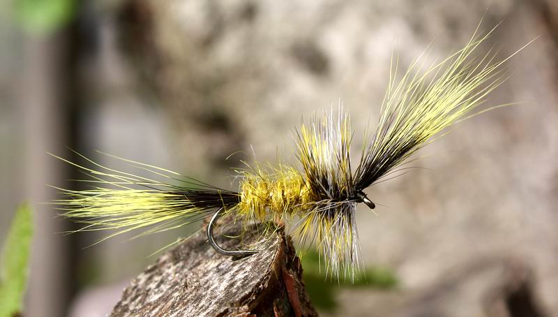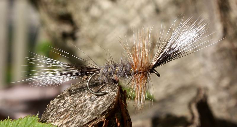 | Die Größe der Fliege wird durch die Auswahl der Stockentenfeder bestimmt. Ruhig größer. Wunderbar leichte Fliege, die einzeln oder zu zweit trockengefischt wird. Geht auch sehr gut am Fluss. |