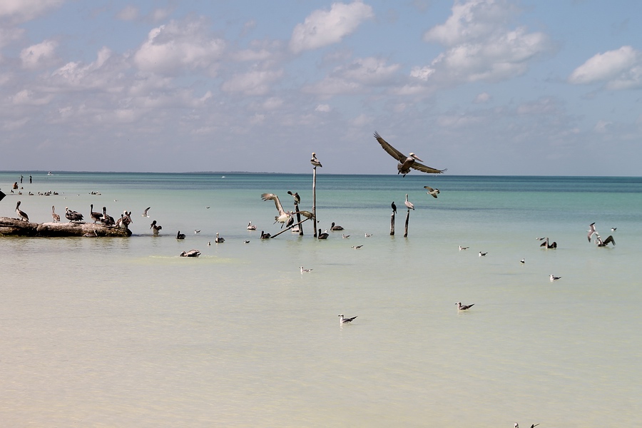 Inzwischen waren einige Tage seit meinen ersten Erfahrungen mit der Salzwasserfischerei auf Cozumel vergangen. Ausgehend von Playa Del Carmen, südlich von Cancun, reisten wir weiter auf die Insel Holbox. Ein einfaches Mittel um dorthin zu gelangen ist mit einem Privaten Transfer oder Taxi. Die Fahrt nach Chicilla, von wo aus die Fähre nach Holbox übersetzt, dauert ungefähr zwei Stunden. Die knapp 20 Minuten dauernde Überfahrt mit dem kleinen Fährboot vergeht wie im Fluge. Sogleich bekommt man einen ersten Eindruck der dortigen Begebenheiten. Mangroven gesäumte Ufergebiete prägen die Landschaft. Am Hafen angekommen, werden Neuankömmlinge von einer großen Anzahl an Wasservögel wie Pelikanen, Fregattvögel und auch Kormoranen begrüßt! |