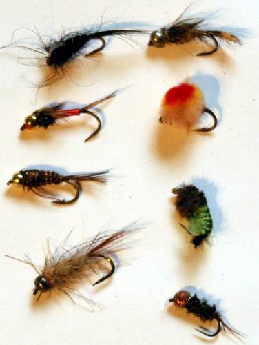 Wer lieber mit der Trockenfliege auf Bachforellen fischt, ist am besten im Jan./Feb. vor Ort. Mai- und Köcherfliegen schlüpfen zwischen Oktober und Dezember. Eine etwas bessere Chance auf die Braunen besteht aber im Mai/ Juni, wenn diese zum Laichen aufsteigen, mit Nymphen. Der große „run“ an Regenbogenforellen ist zwischen August und November zu erwarten. Die Zahl der Forellen, die in den Tongariro aufsteigen, um zu laichen, kann schlecht geschätzt werden, da die Wetterbedingungen einen großen Einfluss haben. Man hat aber eine Auswertung mit Daten aus einem Nebenfluss, in dem man eine Anlage zur Fischzählung installiert hat. Dieser Nebenfluss ist ungefähr ein Viertel so groß wie der Tongariro und hat einen durchschnittlichen (Zehnjahresdurchschnitt) Aufstieg an Bachforellen von 300-500 Stück und Regenbogenforellen von 3000-4000 Stück pro Jahr. Wenn man also nach dem Volumenstrom der Gewässer geht und das auf den Tongariro umlegt, kann man mit ungefähr vier mal so vielen Fischen rechnen. Das ist natürlich nur als Schätzwert anzusehen, mag aber ein Bild abgeben. Zum Gerät: Im Tongariro ist eine 7/8er Rute angebracht, da man i.d.R. schwere Montagen so weit wie möglich befördern können muss und der Fluss so groß ist. Bei Hochwasser und später im Herbst fischen viele Leute auch Sinkschnüre und Streamer. Die üblichste Montage für den Tongariro besteht aber aus einem ca. 3 bis 3,5 Meter langen Vorfach mit zwei leichten Nymphen und einer schweren, komplettiert mit einem Indikator. Eine der beiden kleinen Fliegen kommt ans Ende des Vorfachs, die schwere 50-70cm weiter in Richtung Fliegenschnur auf die Hauptschnur. Noch einmal 50 cm weiter wird ein nicht mehr als 10cm langer Springer angeknotet (am besten aus Fluorcarbon oder sonst einer ca. 0,25-0,30mm starken Nylonschnur, da diese ausreichend steif sind und sich nicht so schnell um die Hauptschnur wickelt). An den Springer kommt die zweite kleinere Nymphe. |