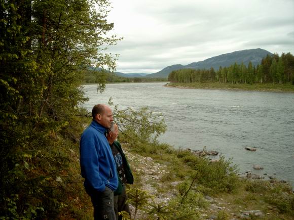Die Glomma bei Atna. Paul und Michael fachsimpeln...