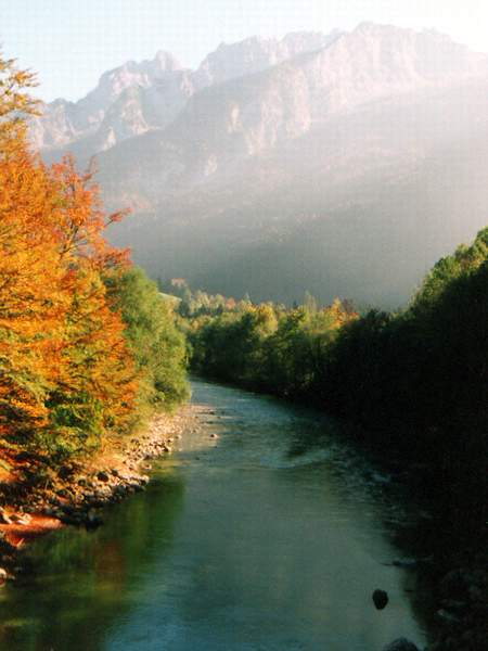 Ein Herbstmorgen an der Lammer in Österreich.