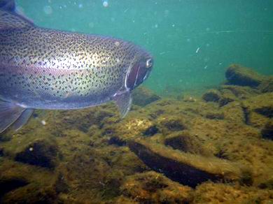 andere Richtung. Kurze Zeit später liegt eine 60er Regenbogenforelle
