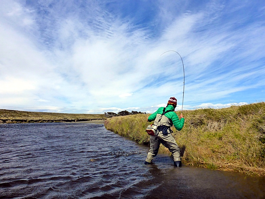 Der Rio Gallegos Der Fluss Rio Gallegos in der Santa Cruz Provinz, wer wird da nicht hellhörig? Nicht nur die Gilde der Historiker, denen wohlbekannt ist, dass der Namensgeber dieses Flußes, Blasco Gallegos einst ein Mitglied der bekannten Expedition des Ferdinand Magellan war. Von seiner Quelle bis zur Tidenregion, sich 300 Kilometer mäanderierend durch rauhes patagonisches Land windend, ist der „Gallegos“ das wohl außergewöhnlichste Salmonidenengewässer Patagoniens. Wenn auch eher bekannt durch den Meerforellenaufstieg, ist vielen Fliegenfischern nicht bewust: der Gallegos bietet mit seinen Quellen und zahlreichen kleinen Zuflüssen eine phantastische Forellenfischerei, die seinesgleichen sucht! Die nunmehr schon seit 100 Jahren sich selbstreproduzierenden Bachforellen haben sich zu einem aussergewöhnlich gesunden Bestand entwickelt, der ungleich anderer argentinischer Gewässer ohne jegliche Besatzmaßnahmen auskommt. Die übersichtliche Flussgröße und das einfach zu bewatende Gewässer bieten eine traumhafte Fischerei auf diese kapitalen und wunderschönen Fische. Noch dazu kommen die im patagonischen Frühjahr eher moderaten Windverhältnisse, verbunden mit guten Insektenschlüpfen in den frühen Morgen- und späten Abendstunden. Mit Trockenfliegen, Aufsteigern und Nymphen, an entsprechend angepassten Vorfächern angeboten, ist das die ausichtsreichste Jahreszeit, diese wunderschönen Bachforellen (und auch Meerforellen) zu überlisten. |