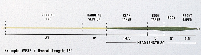 | Klassifizierung: | Die ersten 9,14 Schnurmeter wiegen 7,9 Gramm, das Gewicht liegt damit nach der AFTMA-Tabelle schon in Schnurklasse #4. Das Gewicht der 9,55 m langen Keule beträgt 8,3 Gramm. |