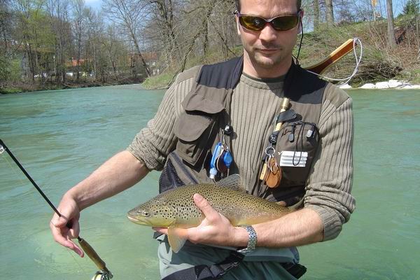 "... ein Unterarm + X... mit dieser phantastischen Bachforelle hat mein Freund Niklas seine Saison 2006 eröffnet...! Vor einem großen Stein hat er sie mit einem Stimulator verführt... warhaft meisterlich!..." Foto und Copyright: Christian Rademann