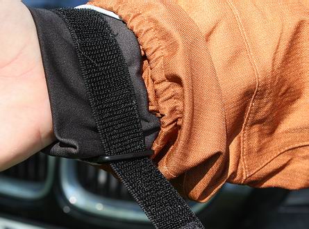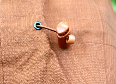 | Alle Reißverschlüsse sind weitgehend Regenfest, sie funktionieren leichtgängig und zuverlässig. Anhängemöglichkeiten fürs Zubehör sind auf der Front gegeben: links und rechts versteckt unter der Brustabdeckung sind jeweils zwei Schlaufen vorhanden. Im Nacken finden wir den üblichen D-Ring für die Kescheraufhängung. Durch den bei Bedarf beidseitig straff einstellbaren Gummizug im unteren Jackensaum kann die Jacke unten ebenfalls schön dicht gemacht werden, aber auch z.B. beim Tiefwaten etwas nach oben genommen und dort fixiert werden. Der materialübliche "technische Rascheleffekt" ist kaum nennenswert, die gedeckte orangebraune Farbe der Jacke gefiel uns gut. Die bis über den Gesäßansatz herab reichende Jacke ist absolut Regendicht: Wasser drang auch beim Testfischen im kräftigen Dauerregen und Schmuddelwetter nicht ins Jackeninnere, an der Atmungsaktivität haben wir bei der Sade ebenfalls nix zu bemängeln. Bei längerer Nässeeinwirkung nimmt der Oberstoff in geringem Maße Feuchtigkeit auf. Die Trocknungzeit ist jedoch rasant schnell. |