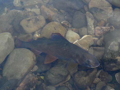 dunkelroten Ring, der auch für die Orava- Äsche typisch ist.