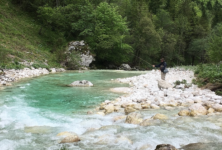 Soca kurz vor Bovec ist echt traumhaft. Zum Befischen dennoch nicht einfach.