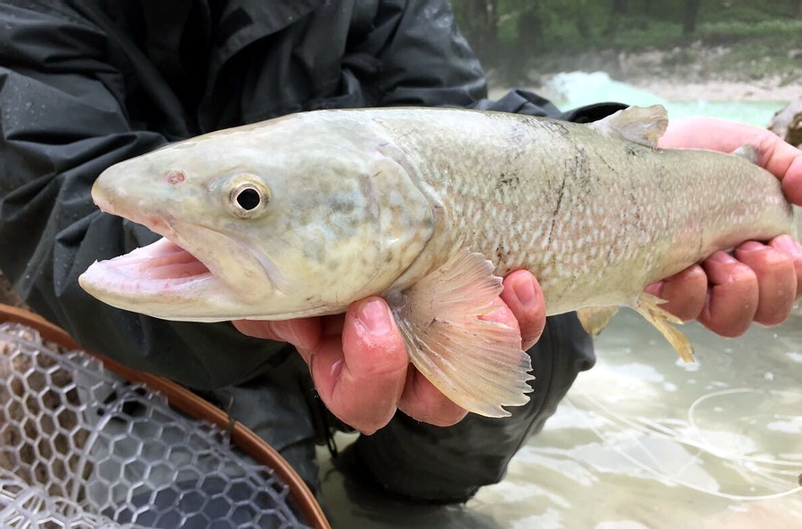 Äsche, die ich direkt unterhalb des sehr bekannten Lepena-Pools fangen