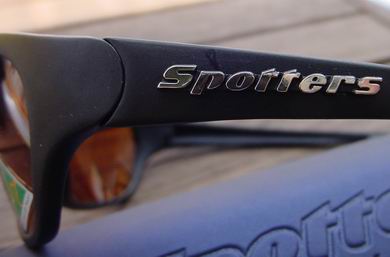 Spotters Sonnenbrillen gibt es in drei verschiedenen Linsenqualitäten: kratzfestes Mineralglas, extrem leichtes CR-39 Kunstharz und unzerbrechliches Polycarbonat. Zur Verfügung stehen sechs verschiedene Linsenfarben und über 36 sehr modisch gestaltete Fassungen (Stand Sommer 2008). Die Preise beginnen bei 129,--Euro. Optisch geschliffene Sonnenbrillen nach Rezept sind auch Bestandteil des Spotters Lieferumfanges. |