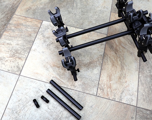 Vorab wäre zu erwähnen, dass das TackleTrip Revolution Rack nicht speziell für Fliegenruten, sondern für alle Arten von Angelruten entwickelt wurde. Da wir uns hier jedoch im Fliegenfischer-Forum befinden, wurden im Test ausschließlich Fliegenruten verwendet (wir können also nichts zur Verwendung mit anderen Angelruten sagen). Bereits ab dem ersten Kontakt & Handling macht das System einen äußerst angenehmen und sehr hochwertigen Eindruck. Es kommt sauber verpackt und ordentlich sortiert in passgenauen Kartons. Durch das vorherige Anschauen der beiden obigen Videos war es für uns kinderleicht, das optimal aufeinander abgestimmte und mit jedem Einzelteil 100%ig passende System zusammenzubauen und im PKW zu testen. Auch hier muss wieder die enorme Hochwertigkeit, Funktion und Passgenauigkeit jeder einzelnen Komponente, jedes Hebels, jeder Schraube, einfach jedes Einzelteiles hervorgehoben werden, denn das ist heutzutage mit der gängigen "Schnell-Fix-Billig-Fernost-Wegwerf-Mentaliotät" keine Selbstverständlichkeit. Wir hatten den 3er Rutenhalter im Test, der für unsere Zwecke völlig ausreicht (es gibt auch einen für 5 Ruten). Jede einzelne Rutenklemme lässt sich bei Bedarf jedoch auch entfernen, sodass man praktisch auch mit nur einer oder zwei Ruten losdüsen kann. Zunächst wird das Trägersystem an die Aufnahme der hinteren mittigen Kopfstützenhalterung angepasst. Dies lässt sich durch mehrere Einstellmöglichkeiten perfekt erledigen, hinzu kommen 2 mitgelieferte Adapterhülsen mit verschiedenen Durchmessern, sodass auch wirklich eine wackel- und kippelfreie Aufnahme erfolgen kann. Der Rest ist rasch erledigt: auf die beiden Rohrschienen kommt zuerst der Haupthalter (der später einfach in der Kopfstützenhalterung eingerastet wird und ebenso schnell wieder entfernt werden kann, z.B. um den kompletten Halter inkl. Ruten abzunehmen und in die Halterung an der Garagenwand einzurasten...), dann von beiden Seiten je ein Rutenhalter mit in unserem Fall je 3 Klemmen. |