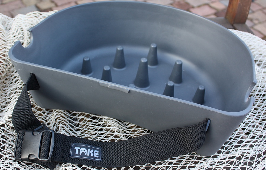 Der Take Tackle Schnurkorb ist Made in EU (Lettland), er sieht zunächst aus wie ein herkömmlicher Schusskorb und wird grundsätzlich ebenso gehandhabt. Der gravierende Unterschied zu den meisten anderen Schusskörben besteht aus der Verwendung von flexiblen, silikonartigen Material für den gesamten Korb. Damit lässt sich dieser besser an den Körper anlegen/anpassen und z.B. beim schnellen Schnureinstrippen kann man sich nicht an harten Außenkanten wehtun, weil keine vorhanden sind. Hier hat jemand echt mitgedacht! Zudem ist der Korb ausgesprochen bruchsicher und gut transportabel. Auch ansonsten hat der Take Tackle Schnurkorb alles an Vollausstattung, was ein solcher braucht: der elastische, einstellbare Watgurt wurde direkt integriert, seitlich links und rechts sind Einbuchtungen für das Ablegen der Fliegenrute vorhanden und im Inneren des schwimmfähigen Korbes befinden sich insgesamt 11 fest mit dem Boden verbundene und unterschiedlich hohe, konische Kegel. |