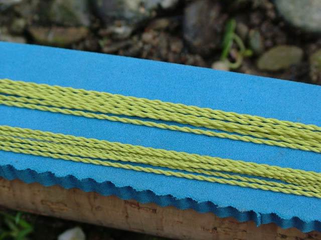 | Modernere Leinen bestehen aus verjüngt verdrallten Fasern aus Polyester oder Monofil oder aus durchgehendem unverjüngtem und eingefärbten Fluocarbon. | ![]() |