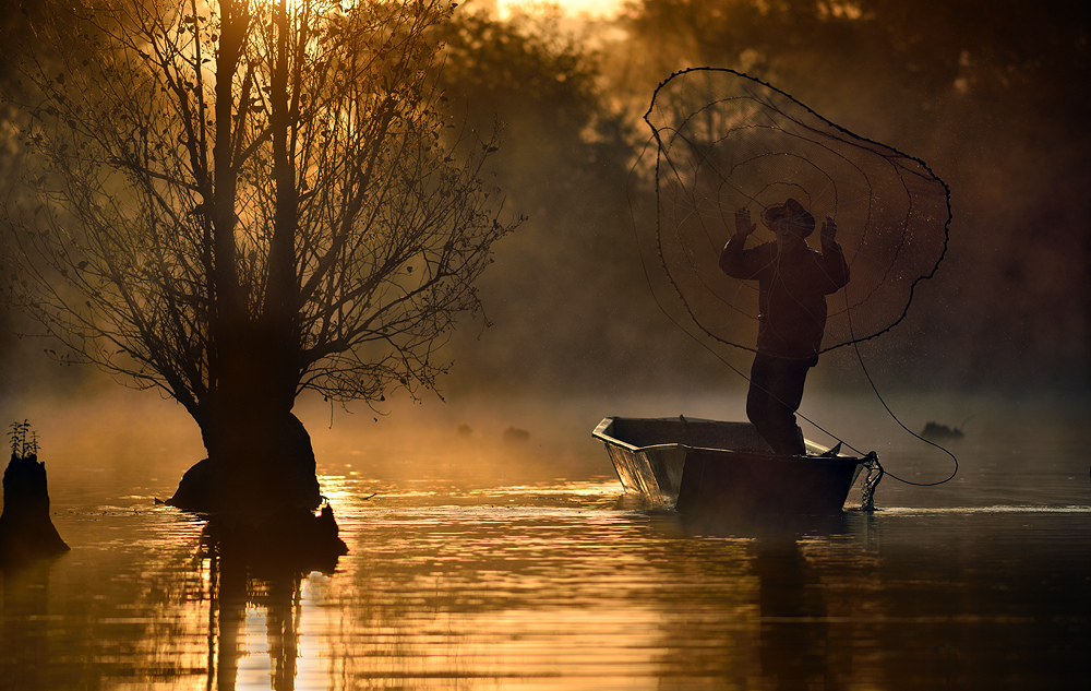 (E-48) | Herbstaufnahme vom Südlichen Oberrhein / Fischer am Altrhein (1/4) | Foto & Copyright: Thomas Kaiser
