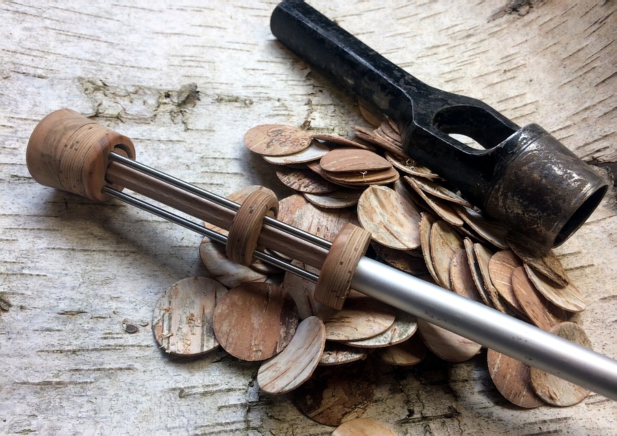 die Birkenrinde in einen Fullwellsgriff verwandelt.