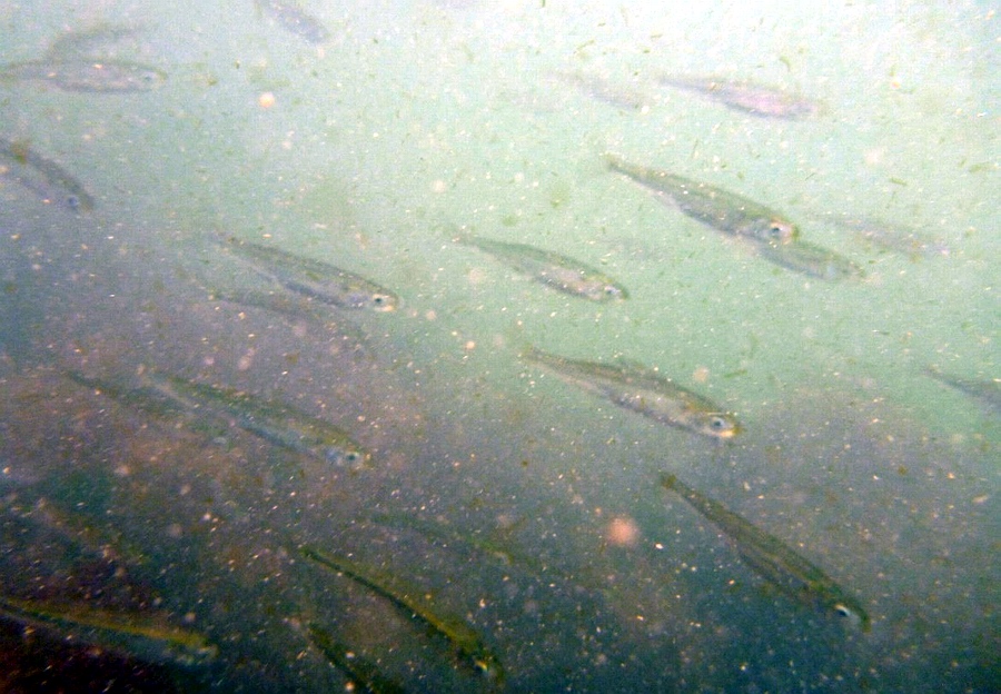 ist voll mit Kleinfischschwärmen, die sich sammeln. Das bleibt auch