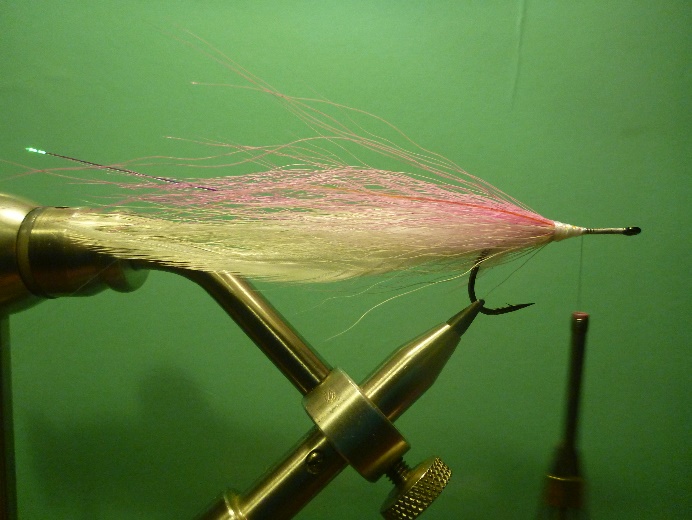 Es handelt sich um ein recht klassisches und zumindest von den Materialien her recht natürlich gebundenes Muster. Ursprünglich kommt dieser Streamertyp meines Wissens von der Striped Bass Fischerei an der amerikanischen Ostküste. Dieser Streamer funktioniert auch wunderbar im Süßwasser. Pinke Makrele Hollowbuild Materialliste: