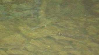 | Obwohl der Wasserstand in diesem Abschnitt oft niedrig ist, stehen gerade hier in großen wannenartigen Vertiefungen ganze Schwärme von Äschen, vereinzelt sind Hasel, Döbel und Forellen darunter. Die Seichtigkeit des Wassers und seine damit gegebene Klarheit erfordern natürlich ein ganz behutsames Anpirschen und -werfen. |