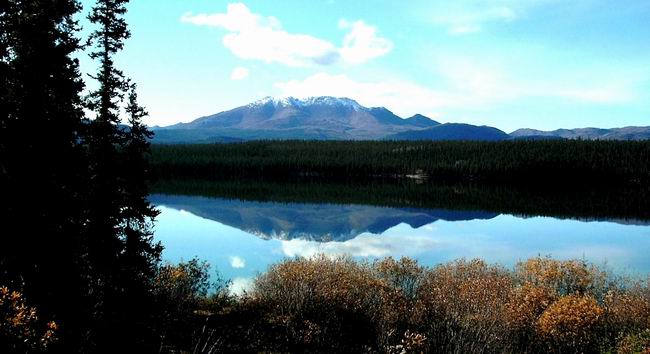 Zum dritten Mal im Yukon! Er lässt einen in der Tat nicht mehr los, wenn man einmal seinem Zauber erlegen ist. Nach 2000 und 2002 war es in diesem Jahr wieder einmal soweit, dass ich mich seinem Ruf nicht mehr entziehen konnte. Mit von der Partie war diesmal Erwin, passionierter Jäger und engagierter Naturschützer und -liebhaber in einem. Wir hatten, weil wir beide Natur unmittelbar erleben wollten, eine Hütte gebucht, in der wir allein und selbständig wohnen und die uns umgebende Tier- und Pflanzenwelt hautnah beobachten und genießen konnten: das Cabin am Fox Lake, etwa 45 km nördlich von Whitehorse nicht unweit des North Klondike Highways direkt am Ufer des Fox- Lakes gelegen. Die sie umgebende Landschaft ist zumal zu Zeiten des Indian Summers einfach großartig - in all ihrer Schönheit und Farbenpracht. |