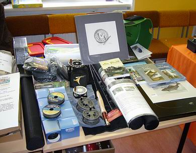 | Drei Tageshöhepunkte kamen am Nachmittag: zunächst die Versteigerung hochkarätig bestückter Fliegendosen etc. aus der Aktion "Fliegenbinden & Spenden" (Die Aktion? Siehe hier.), moderiert von Thomas Mühlhause und Michael Müller. Der Erfolg war gut, jedoch nicht vollständig: es sind noch einige bunt gemischte 25er Fliegentüten a. 25 € und die edelste Dose, eine handgravierte und prall gefüllte Aluminium- Fliegendose der Heartland Flyfishers zu haben. Interessenten melden sich bitte bei uns, damit die Aktion bald abgeschlossen werden und die gesamten Spendengelder überreicht werden können. |