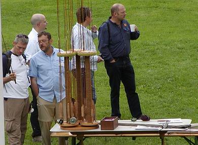 Daneben ebenfalls bei allen fünf Veranstaltungen bisher mit dabei: Fisch im Netz - der Angelspezi aus Arnstadt, u.a. mit Orvis, Scierra, Ron Thompson, EXORI, Cortland und Greys. Die große Wurfbahn war wieder ausgerollt und so wurden dort, wie auch auf der gesamten großen Wiese an allen in Frage kommenden Plätzen den ganzen Tag über und ohne Pause die Ruten geschwungen. Besondere Höhepunkte auf der Wurfwiese waren die LOOP Zweihand-Wurfvorführungen mit Stephan Dombaj (siehe links) und die Trickwurf-Demos mit der Gespließten mit Matthias Meyer. Neben den Vorführungen lt. Programm konnten die Besucher den ganzen Tag über mit den Instruktoren fachsimpeln, das Fliegenwerfen üben und Geräte ausprobieren. |